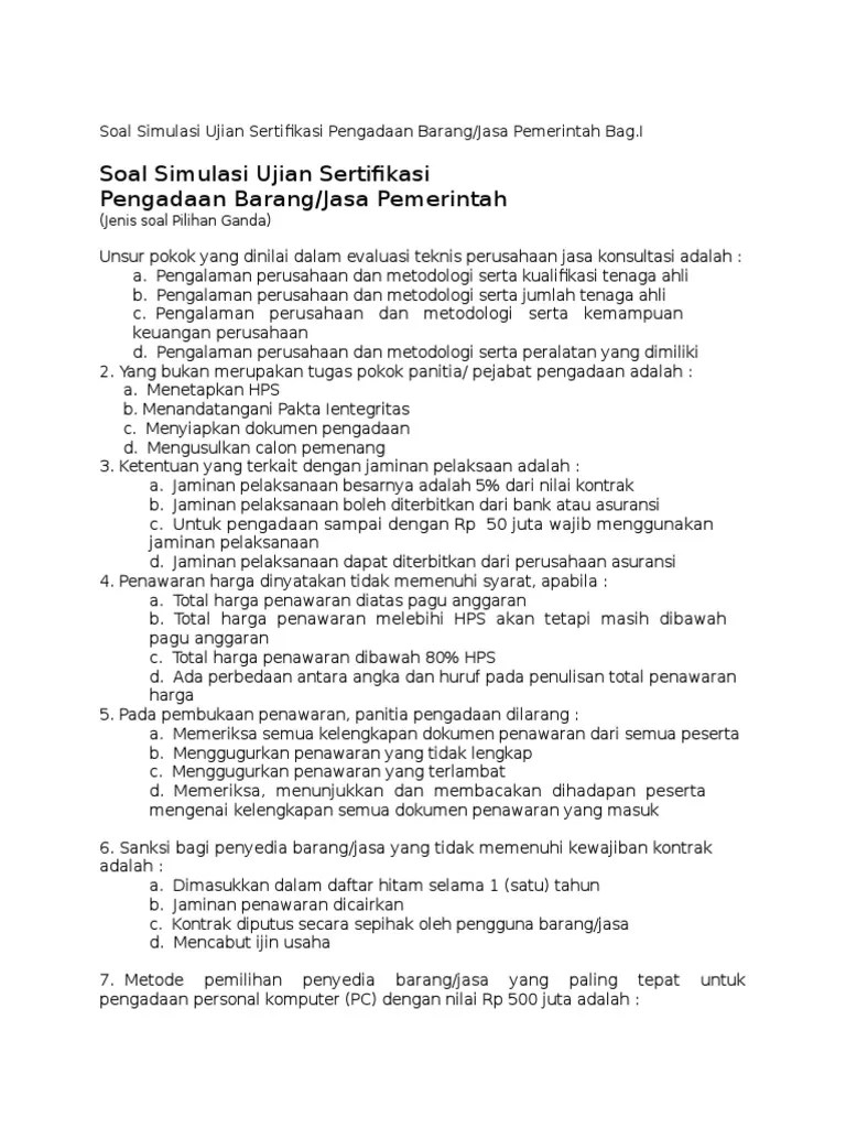 Soal Ujian Pbj 2019 Pdf - Soal Pengadaan Pdf / 2021 & ujian sertifikasi ahli pb/j p tk.
